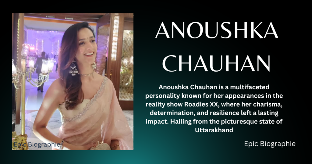 Anoushka Chauhan is a multifaceted personality known for her appearances in the reality show Roadies XX, where her charisma, determination, and resilience left a lasting impact. Hailing from the picturesque state of Uttarakhand, she is also a successful model and budding actor. Anoushka has celebrated for her dynamic presence, both on-screen and on the runway, showcasing a blend of natural beauty and immense talent. Her ability to connect with audiences has made her a rising star in the entertainment industry.